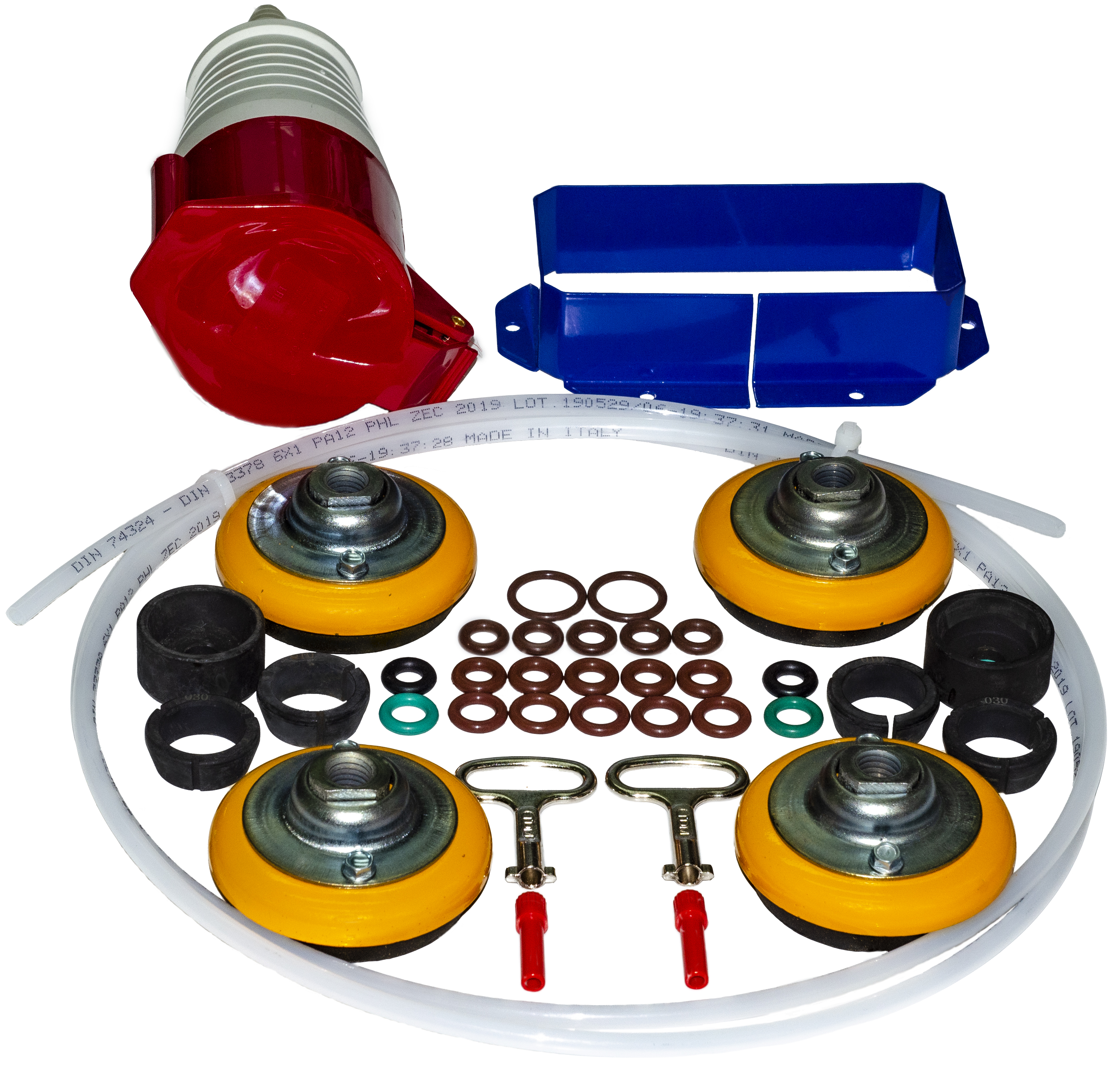Для эффективной работы и удобства подключения, возможна установка гибкой трубки PARKER на 2500 бар и угловой переходник для удобного подключения форсунок.