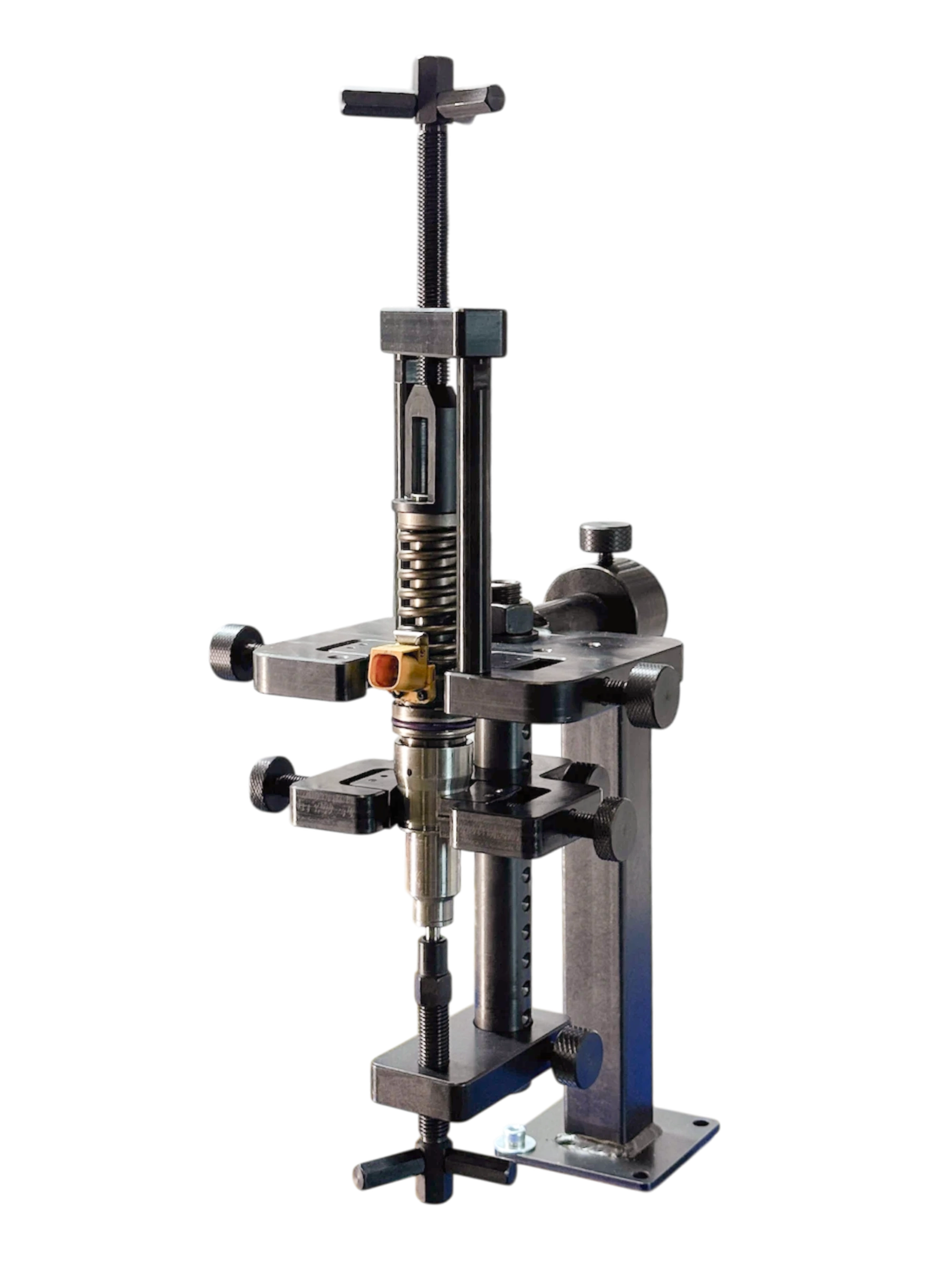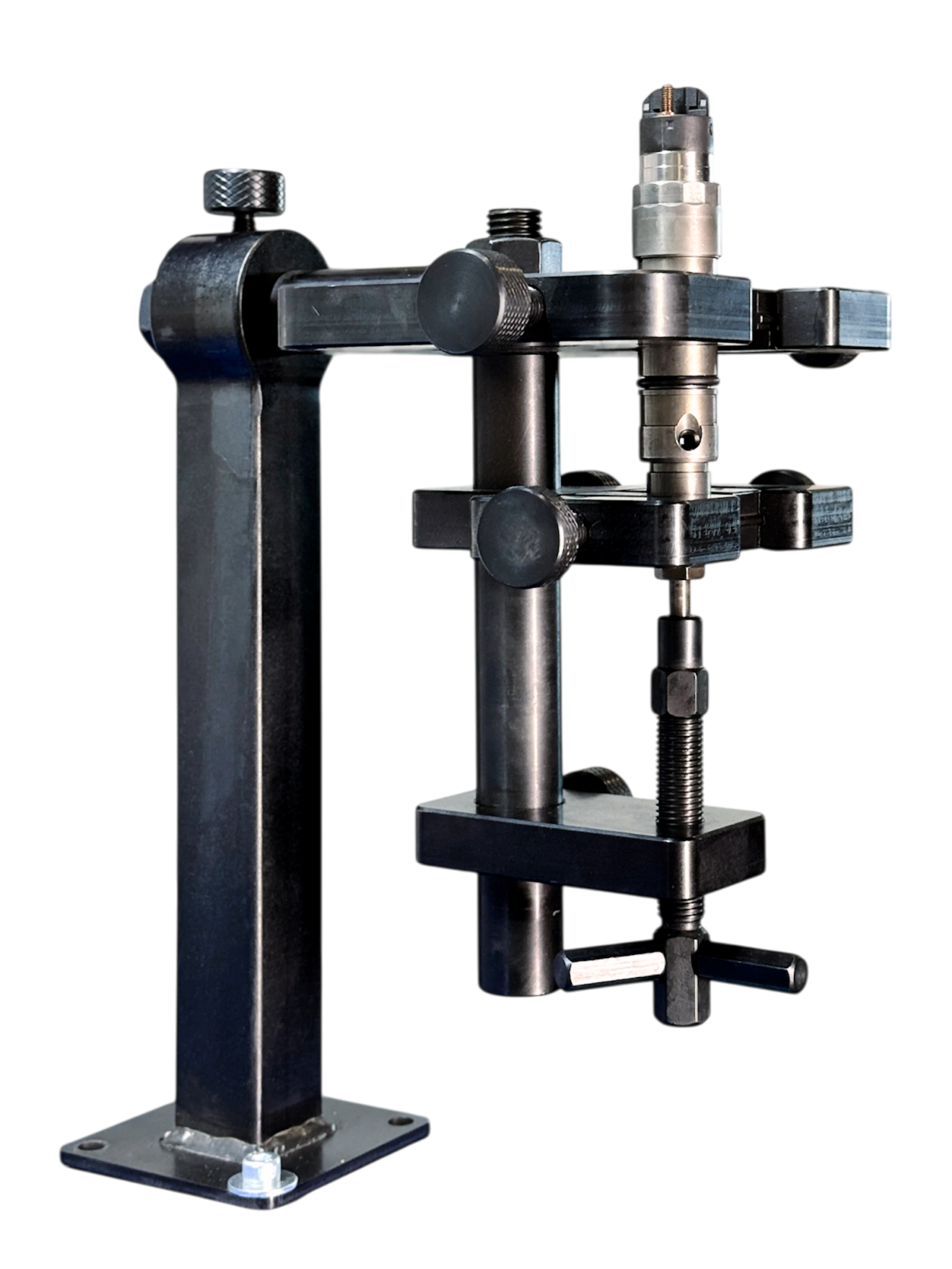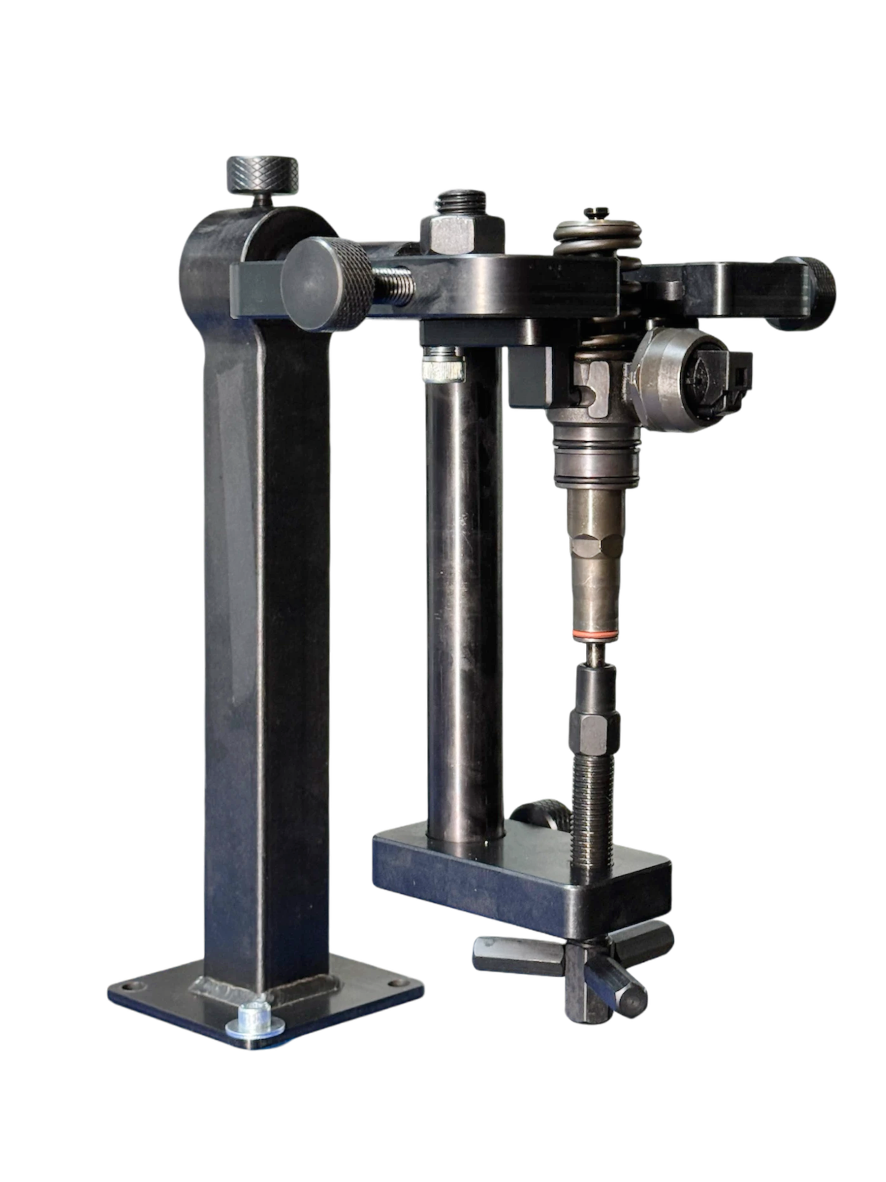 Конструкция позволяет работать с широким перечнем форсунок и насосных элементов. Упор выбирается в зависимости от диаметра распылителя форсунки, а дополнительное оснащение используется по необходимости под конкретную задачу.